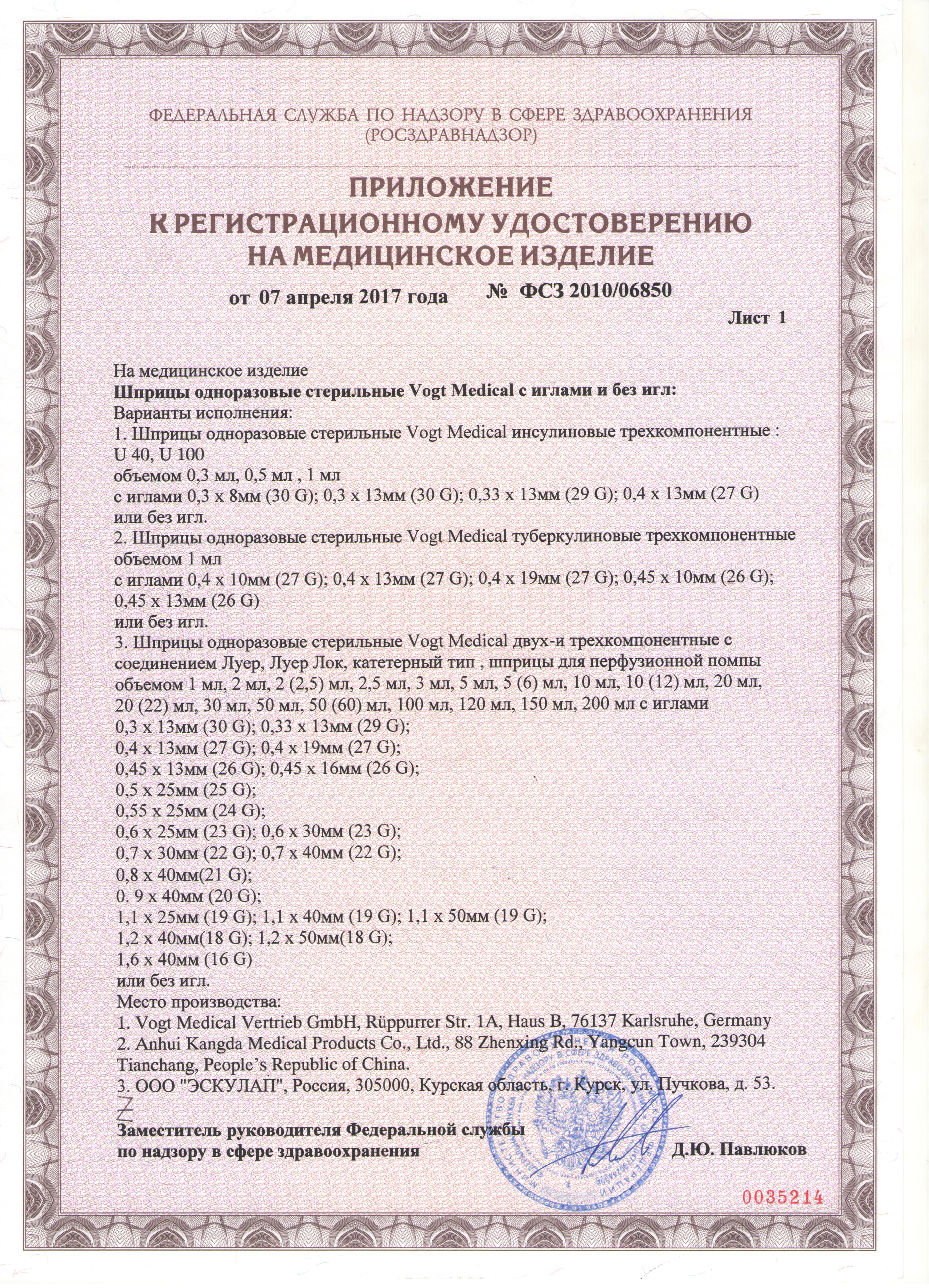 Шприцы одноразовые трехкомпонентные Vogt Medical (Германия) предназначены для подкожных, внутримышечных и внутривенных инъекций. Шприц Vogt Medical (Германия) отличается более плавным и мягким ходом поршня, чем у двухкомпонентных шприцев, ему отдают предпочтение в отраслях медицины, где необходимо медленное внутривенное введение препаратов (анестезиология, интенсивная терапия, служба скорой и неотложной медицинской помощи, медицина катастроф).